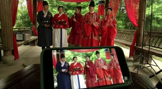 កូនកំលោះក្រមុំបានគ្រងនូវឈុតរៀបការតាមប្រពៃណី ដោយបានផ្លាស់ប្តូរសម្បថក្នុងពិធីរយៈពេល ២ ម៉ោង ដែលចូលរួមដោយអ្នករៀបចំកម្មវិធី និងកាមេរ៉ាថត។ ក្នុងពេលផ្សាយផ្ទាល់នោះ មានអ្នកចូលទស្សនាប្រមាណ ៥០ ម៉ឺននាក់ឯណោះ។ អាចនឹងការសោកស្តាយតិចតួច ពីព្រោះមានភាពខុសគ្នារវាងការបង្ហាញសារជូនពរ តាមអ៊ិនធរណេតនិងជូនពរផ្ទាល់មាត់។ ប៉ុន្តែតាមរយៈពិធីមង្គលការតាមអ៊ិនធរណេតនេះ យើងក៏អាចចែករំលែកសុភមង្គលរបស់យើងជាមួយមនុស្សជាច្រើនដែលយើងពុំបានស្គាល់ក្នុងពេលព្រមគ្នា ដែលខ្ញុំគិតថាពិតជាមានអត្ថន័យណាស់។ នេះជាសម្តីដែលបានពោលដោយកូនក្រមុំ Zhang Yitong។