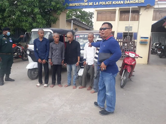 លោកវរសេនីយ៍ឯក ជឹម ស៊ីថា អធិការនគរបាលខណ្ឌដង្កោ បានឲ្យដឹងថា ជនសង្ស័យ០៥នាក់ ដែលឃាត់ខ្លួនបានរួមមាន ៖ ទី០១ឈ្មោះ ម៉ិញ សំណាង ភេទប្រុស អាយុ៣១ឆ្នាំ ជនជាតិខ្មែរ មុខរបរ រត់កង់បីឥណ្ឌា ស្នាក់នៅផ្ទះជួលភូមិទួលពង្រ សង្កាត់ចោមចៅ ខណ្ឌពោធិ៍សែនជ័យ រាជធានីភ្នំពេញ , ទី០២ឈ្មោះ សេង ជីវ័ន្ត ភេទប្រុស អាយុ១៨ឆ្នាំ ជនជាតិខ្មែរ មុខរបរមិនពិតប្រាកដ ស្នាក់នៅផ្ទះជួលភូមិទួលពង្រ សង្កាត់ចោមចៅ ខណ្ឌពោធិ៍សែនជ័យ រាជធានីភ្នំពេញ , ទី០៣ឈ្មោះ យឿន យ៉ាវ ភេទប្រុស អាយុ២០ឆ្នាំ ជនជាតិខ្មែរ មុខរបរមិនពិតប្រាកដ ទីលំនៅភូមិប្រការ សង្កាត់ព្រៃស ខណ្ឌដង្កោ រាជធានីភ្នំពេញ , ទី០៤ឈ្មោះ យឿន ពៅ ភេទប្រុស អាយុ២២ឆ្នាំ ជនជាតិខ្មែរ មុខរបរមិនពិតប្រាកដ ទីលំនៅភូមិប្រការ សង្កាត់ព្រៃស ខណ្ឌដង្កោ រាជធានីភ្នំពេញ និងជនសង្ស័យទី០៥ឈ្មោះ ខែក សុភារ៉ា ភេទប្រុស អាយុ២៣ឆ្នាំ ជនជាតិខ្មែរ មុខរបររត់ ម៉ូតូកង់បីឥណ្ឌា ស្នាក់នៅផ្ទះជួលភូមិទួលពង្រ សង្កាត់ចោមចៅ ខណ្ឌពោធិ៍សែនជ័យ រាជធានីភ្នំពេញ ។