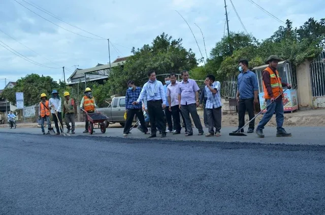 នារសៀលថ្ងៃទី២៣ ខែធ្នូ ឆ្នាំ២០២០ ឯកឧត្តម អ៊ុន ចាន់ដា អភិបាលនៃគណៈអភិបាលខេត្តកំពង់ចាម បានដឹកនាំមន្ត្រីជំនាញ អាជ្ញាធរក្រុងកំពង់ចាម អញ្ជើញចុះពិនិត្យមើលសកម្មភាពនៃការអ៊ុតកៅស៊ូបេទីមលើកំណាត់ផ្លូវកម្ពុជាក្រោម ប្រវែង ៨៤០ម៉ែត្រ ចាប់ពីរង្វង់មូល (១-៧៩) ដល់ក្រោយអង្គភាពរដ្ឋករទឹក ដែលមានទទឹង ៨ម៉ែត្រ ស្ថិតនៅក្នុងសង្កាត់បឹងកុក ក្រុងកំពង់ចាម ។