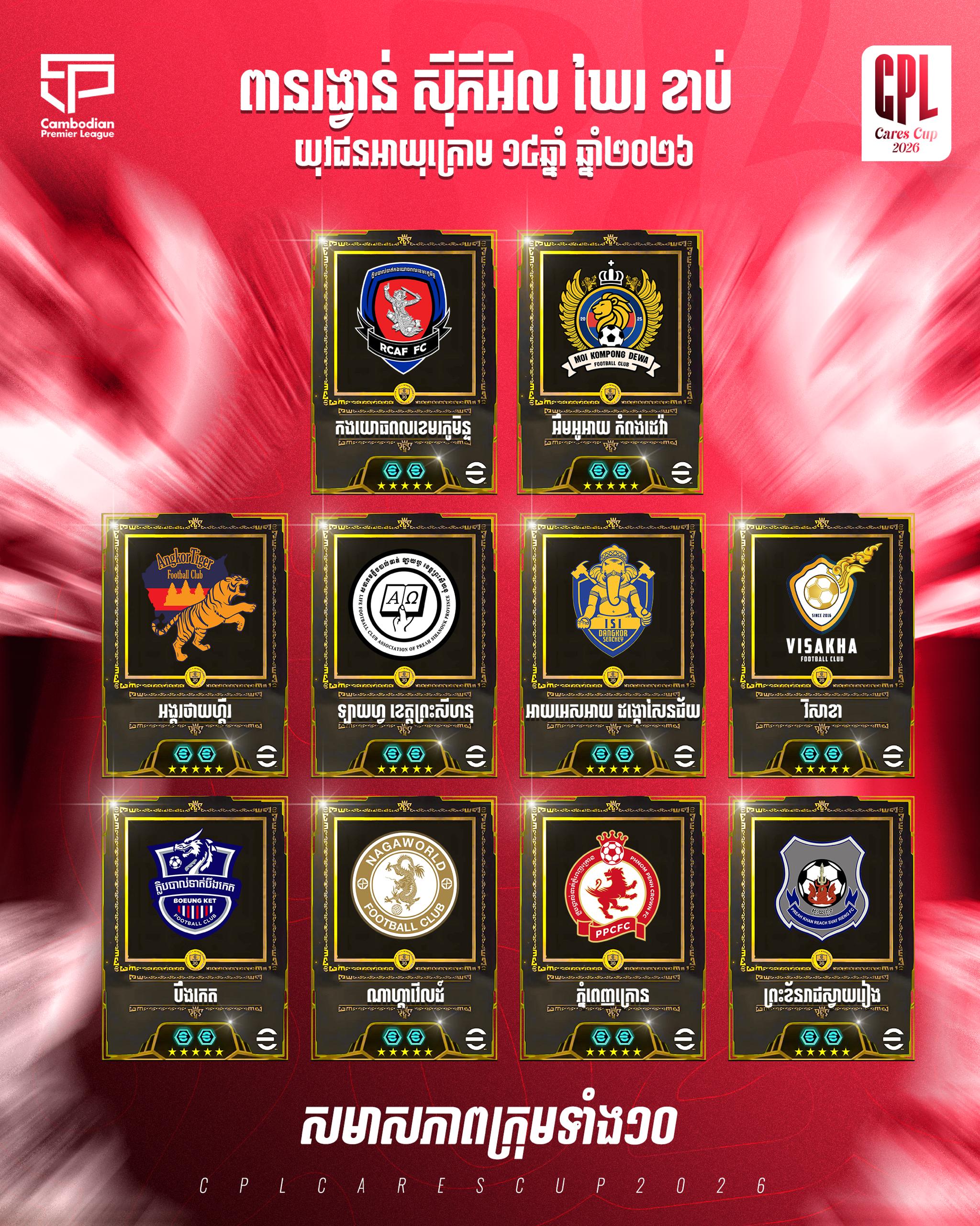 ភ្នំពេញ៖ ក្រុមហ៊ុនខេមបូឌានព្រីមៀរលីគ នឹងរៀបចំការប្រកួត ស៊ីភីអីល ឃែរ ខាប់ យុវជនអាយុក្រោម ១៤ ឆ្នាំ ឆ្នាំ ២០២៦ រយៈពេល ២ (ពីរ) ថ្ងៃ ពោលគឺចាប់ពីថ្ងៃទី ២៨ ដល់ថ្ងៃទី ២៩ ខែមីនា ឆ្នាំ ២០២៦ នៅទីលានហ្វឹកហាត់ភ្នំពេញក្រោន។ បើយោងតាមគណៈកម្មាធិការរៀបចំការប្រកួត ពានរង្វាន់នេះ ត្រូវបានរៀបចំឡើងក្នុងគោលបំណងជួយឲ្យបណ្តាក្លិបបាល់ទាត់ដែលកំពុងចូលរួមការប្រកួតជម្រើសជើងឯក ខេមបូឌាន ព្រីមៀរលីគ អាចបំពេញបាននូវលក្ខខណ្ឌតម្រូវតាមបទបញ្ជាអាជ្ញាបណ្ណក្លិបអន្តរជាតិ ជាពិសេសតាមចំណុចវិនិច្ឆ័យផ្នែកកីឡា (AFC) ដើម្បីទទួលបានសិទ្ធិពេញលេញចូលរួមការប្រកួតដែលរៀបចំដោយសហព័ន្ធកីឡាបាល់ទាត់ទ្វីបអាស៊ី។